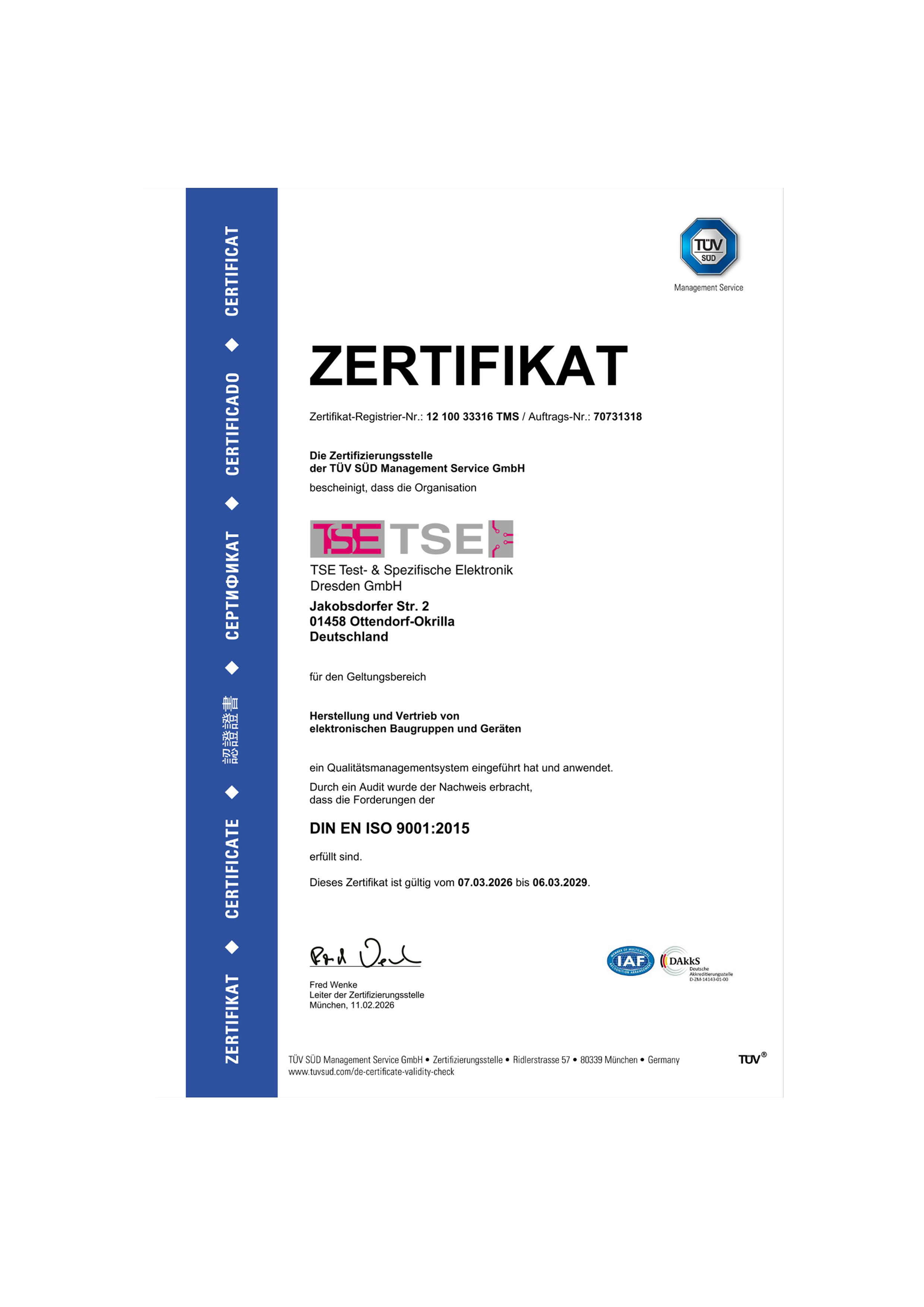 Qualität ist für die TSE Test- & Spezifische Elektronik Dresden GmbH kein Zufall, sondern das Ergebnis klar definierter Prozesse und kontinuierlicher Verbesserung.